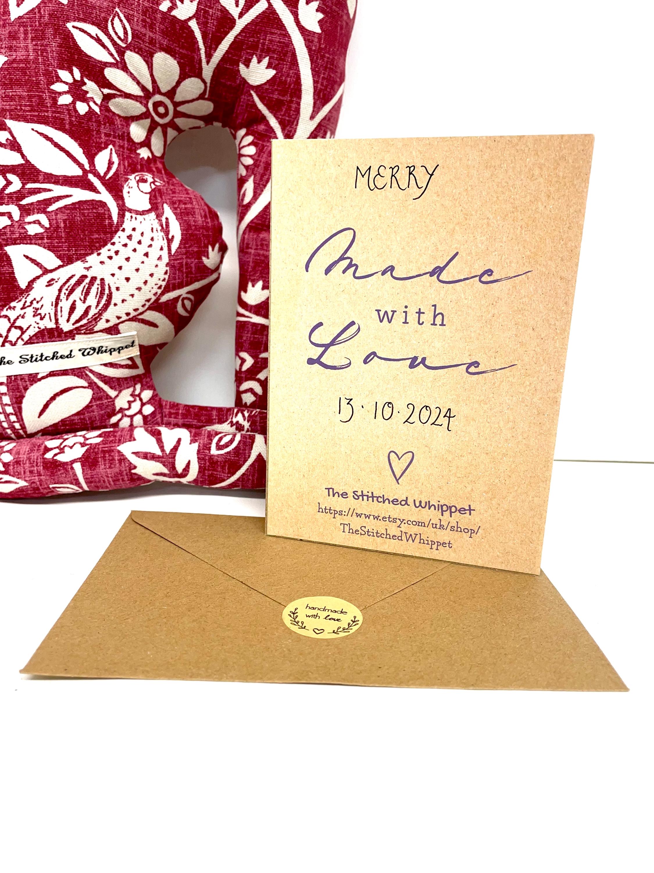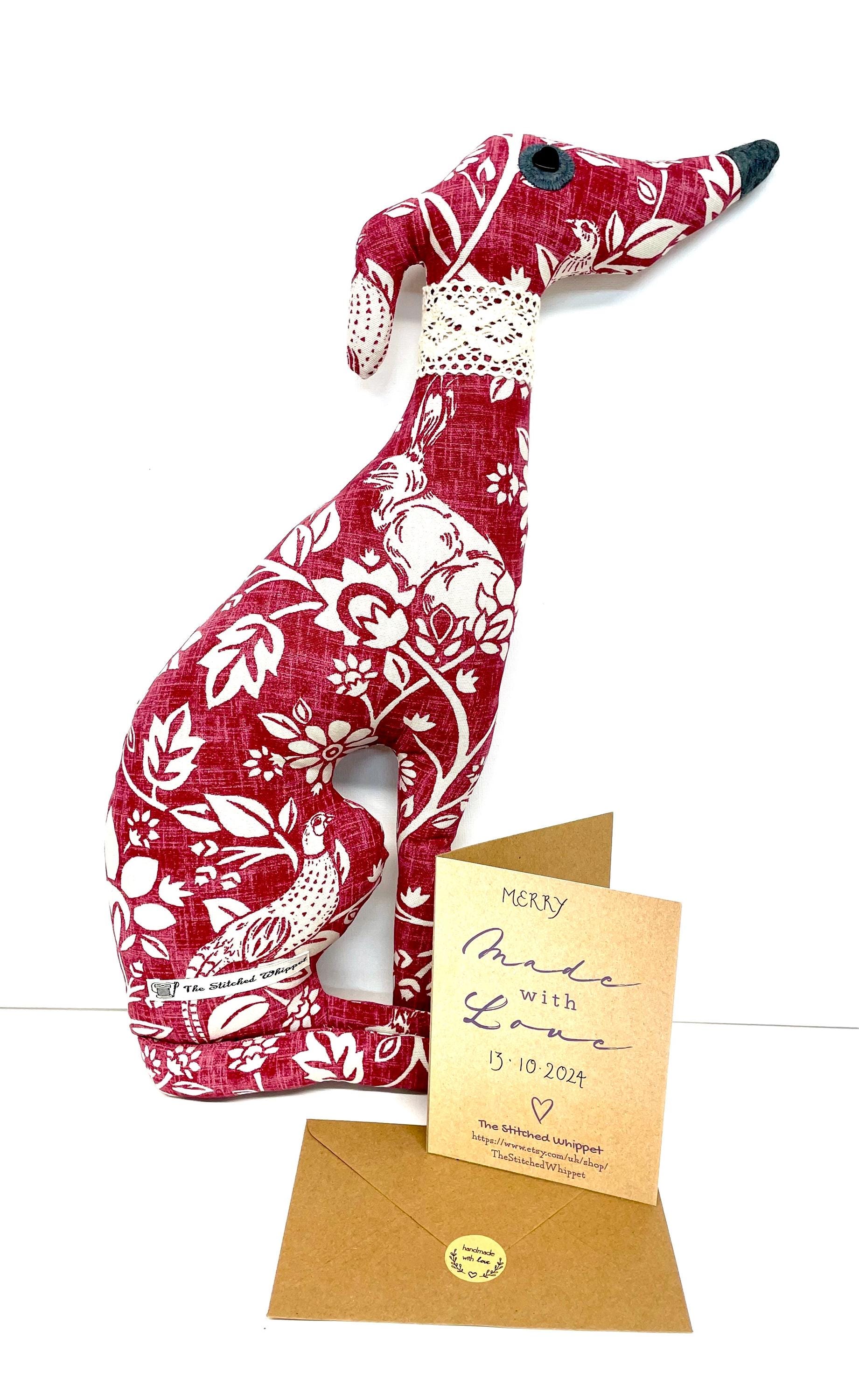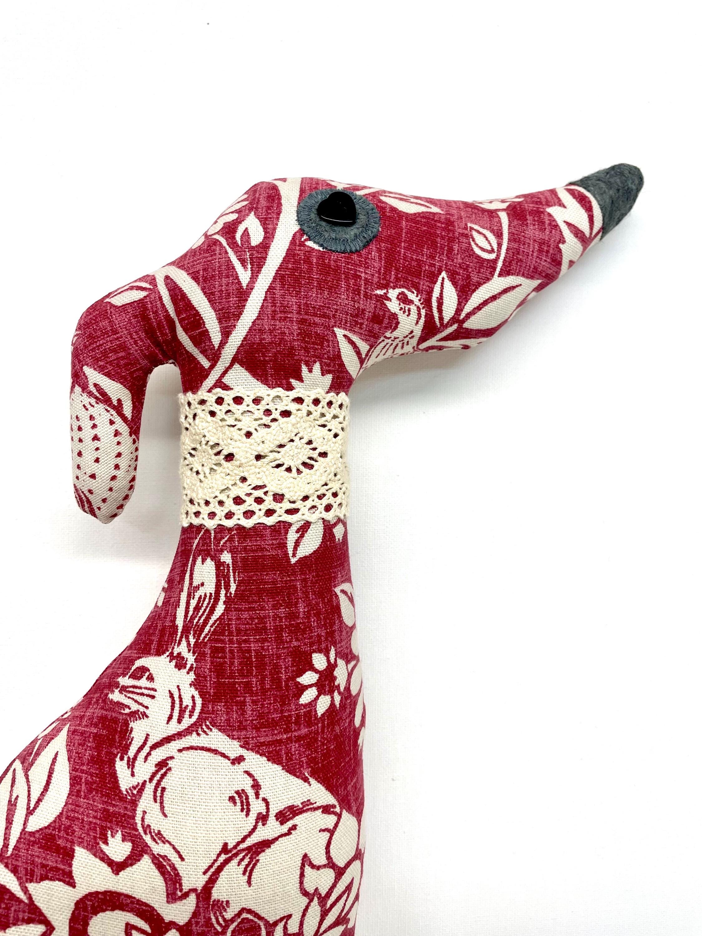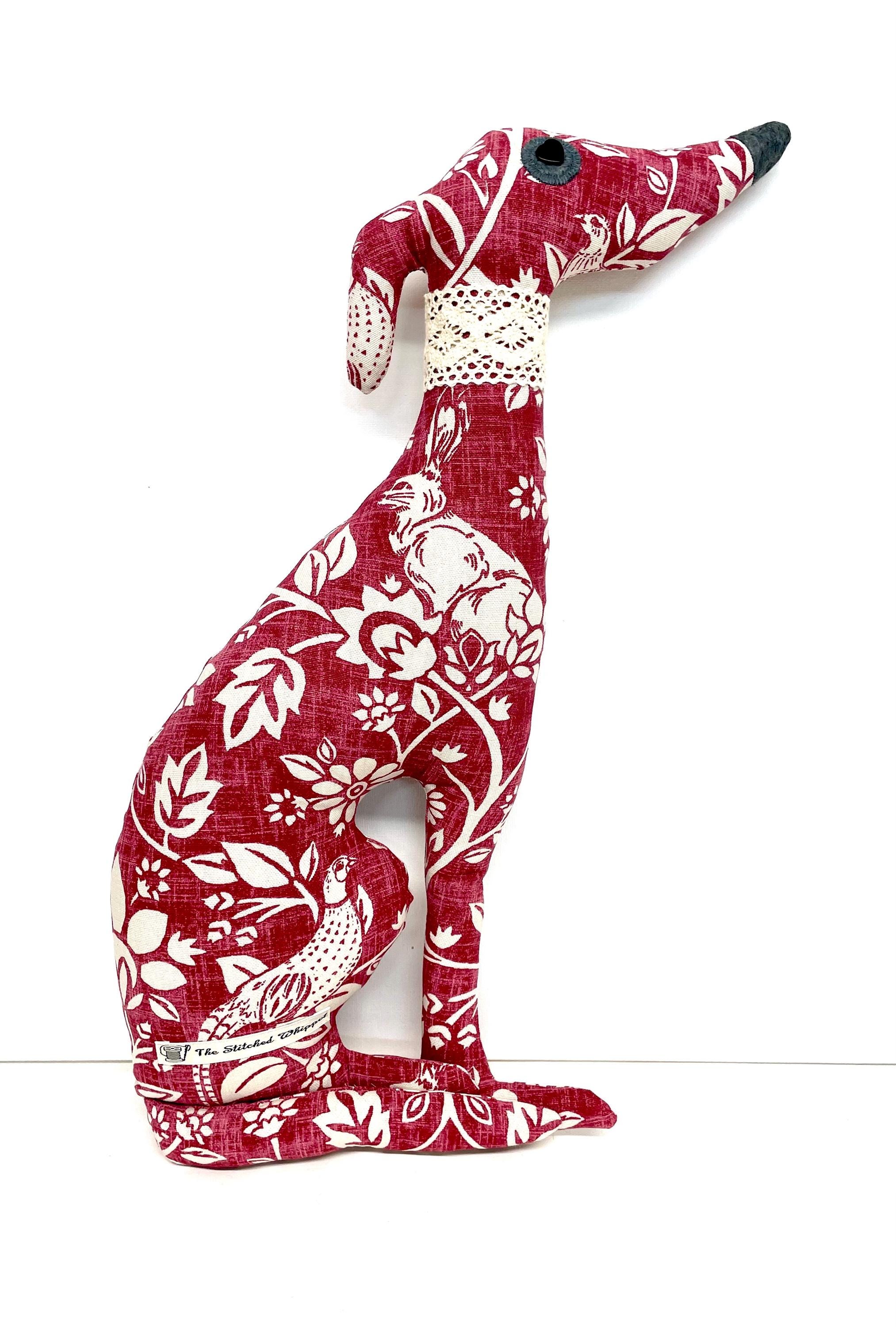 Handmade Decorative Stuffed Whippet, Merry the whippet, whippet gift, whippet plushie.